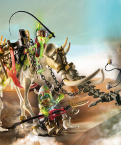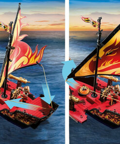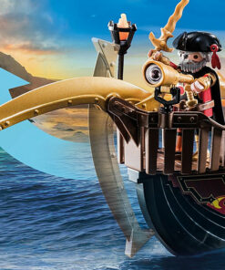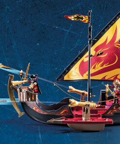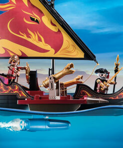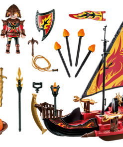 La búsqueda de la armadura mágica Invincibus continúa. Pero la aventura no sólo tiene lugar en tierra firme. Incluso en el agua, los bandidos de Burnham son una amenaza candente con su barco multifuncional. Si se acerca un enemigo, los cañones se ponen en posición a la velocidad del rayo. En cuanto la nave se acerca lo suficiente, los bandidos extienden su proa y la utilizan como gancho de agarre. El impulsivo Bayron Burnham está al mando a bordo del barco. En este momento, está estudiando la brújula mágica para conocer las coordenadas de la Invincibus. ¿Llevará la brújula a los bandidos Burnham a su destino? El juego incluye al líder de los bandidos de Burnham, Bayron Burnham, y a Archibald Blazebow, un barco de fuego con cañones que funcionan, velas de dragón y una brújula mágica. La hoz de la proa del barco puede usarse como protección contra el ariete o como gancho de agarre. Al barco se le puede añadir el motor submarino