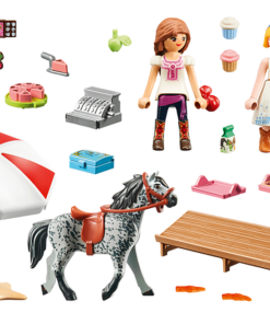 A Fortu y Abigaíl les encanta dar largos paseos con sus caballos por la pradera salvaje. Al volver al pueblo, después de una emocionante aventura, les gusta desviarse a la tienda de dulces de Miradero. Aquí les esperan muchas delicias que se les hace la boca agua: sabrosas magdalenas, pasteles dulces y bollos se presentan en el mostrador. Con tanta oferta, no es fácil para las dos chicas decidirse. Especialmente la golosa Abigail, ¡quiere probarlo todo! Hoy, las dos chicas eligen una magdalena y la disfrutan. ¡Delicioso! El set está formado por las amigas Fortu y Abigaíl, así como por un caballo, un puesto de dulces con magdalenas, pasteles y bollos, una caja registradora y muchos otros encantadores extras.