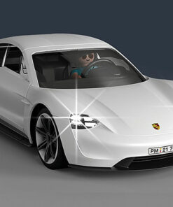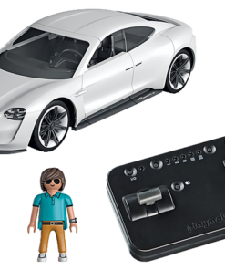 Conoce el ingenioso Porsche Mission E: la combinación perfecta de tecnología de alto rendimiento y diseño de coche deportivo. El Porsche Mission E lleva la movilidad eléctrica a la sala de juegos. Los fans de los coches deportivos estarán encantados no sólo por la genial iluminación frontal, sino también por el diseño único de las luces. Por supuesto, el modelo PLAYMOBIL Porsche Mission E también cuenta con un arco de luz continuo en la parte trasera. Incluso se puede recrear el proceso de carga del deportivo eléctrico, como en la vida real. Gracias al mando a distancia RC integrado, los pequeños aficionados a los coches deportivos pueden arrancar inmediatamente. La diversión de las carreras de última generación. El set de juego incluye un Porsche Mission E, una simpática figura PLAYMOBIL, una columna de carga con cable de carga, un mando a distancia RC y otros emocionantes extras para una acción de carreras de ritmo rápido. Se necesitan siete pilas AAA de 1,5 V para el módulo luminoso y el mando a distancia (no incluidas).