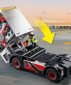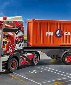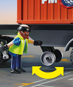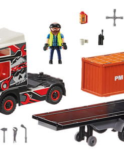 Las rutas de carga en tierra se cubren con el versátil camión con remolque. Este camión no sólo es robusto y práctico, sino que también tiene un aspecto estupendo con su genial motivo de calavera en la cabina del conductor. Tan pronto como el siguiente buque portacontenedores llega al puerto, el conductor hace avanzar el camión. En un abrir y cerrar de ojos, los pesados contenedores se cargan en la gran zona de carga y el viaje continúa. No hay tiempo que perder, ¡ya se espera con impaciencia la entrega! El set de juego consta de una figura PLAYMOBIL, un camión con remolque, radio, caja de herramientas, botella de aceite y muchos otros extras. El camión se puede mejorar con un mando RC (no incluido).
