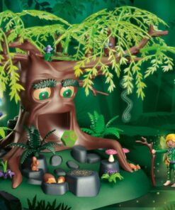 Bien escondido en el misterioso bosque se encuentra el fantástico y viejo Árbol de la sabiduría. Si las hadas están perdidas, piden consejo a este mágico habitante del bosque. El único problema es que este árbol torcido siempre está cansado y habla en clave. Para despertarlo, Forest Fairy lanza el cubo mágico desde arriba a la copa del árbol, gira la rama del lado hacia atrás y el Árbol de la Sabiduría abre los ojos. Con el impulso, el cubo sale de su boca y da la respuesta a la pregunta formulada. Al menos si sabes leer los símbolos. Quizá el simpático dragoncito que vive en la copa del árbol también ayude a descifrar la respuesta. Un conjunto mágico lleno de infinitas posibilidades de juego para todos los niños imaginativos. El set de figuras de juego contiene un Forest Fairy con alma de zorro, un Árbol de la Sabiduría con párpados móviles, escondite secreto y Cubo de Rubik, un pequeño dragón y muchos más mágicos extras. Las ramas del árbol brillan en la oscuridad.