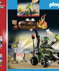 ¡La introducción perfecta a los mundos PLAYMOBIL! El ágil brazo de agarre del quad puede ayudar al experto a desactivar la bomba mientras el policía cierra la zona de peligro.