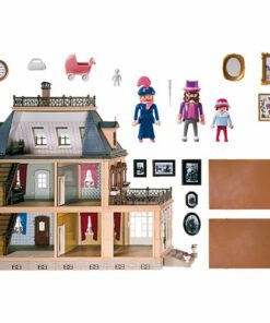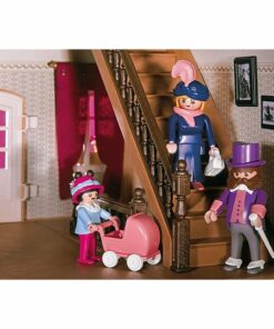 Bienvenido a la gran Casa de Muñecas Victoriana de PLAYMOBIL con elegantes balcones y terraza en el tejado. La casa transporta inmediatamente a la época victoriana con las ventanas blancas con decoradas con jardineras. En las cinco habitaciones distribuidas en dos plantas, los habitantes de la casa disponen de mucho espacio para la vida cotidiana de la familia. Las paredes de las habitaciones están decoradas con papel pintado de flores y cuadros antiguos, lo que crea un ambiente acogedor. Una encantadora casa de juguete con muchos detalles que invita a niños y niñas a contar emocionantes historias. El set de PLAYMOBIL incluye tres figuras, una gran casa de muñecas con dos pisos y una azotea, un cochecito de muñeca, jardineras y muchos otros encantadores extras