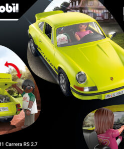 ¿Quién no ha soñado con tener un auténtico Porsche? Con el Porsche 911 Carrera RS 2.7, un clásico y nostálgico coche deportivo forma parte de PLAYMOBIL. El primer coche deportivo del mundo con alerones delanteros y traseros, es un gran modelo de PLAYMOBIL. La forma legendaria de la carrocería, de un diseño singular, presenta detalles aerodinámicos y el icónico alerón trasero, más conocido como «Duck Tail». Los espejos retrovisores y los faros delanteros con detalles cromados, junto con las letras Carrera curvas en el lateral, dan al coche clásico una elegancia especial. Para sentar a las figuras en el interior del coche, basta con retirar el techo. Los aficionados también pueden abrir el maletero para descubrir el motor bóxer de 6 cilindros del vehículo. Tanto si se trata de un viaje deportivo por carretera, como de una sinuosa carretera rural, cada viaje es una experiencia con el Porsche 911 Carrera RS 2.7 de PLAYMOBIL. Un modelo de coche deportivo único que no debería faltar en ninguna colección. El set de juego incluye un Porsche 911 Carrera RS 2.7 amarillo con techo desmontable y maletero abatible, dos figuras PLAYMOBIL con cesta de pícnic, manta, mapa de carreteras y otros accesorios para un viaje inolvidable. La tabla incluida recoge la información más importante del coche deportivo. Recomendado para edades comprendidas entre los cinco y los noventa años. Advertencia. Peligro de asfixia. Piezas pequeñas. No apto para niños y niñas menores de 3 años.