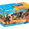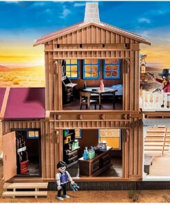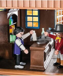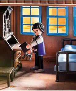 Los vaqueros necesitan hacer la compra, es necesario que haya una tienda del Oeste bien surtida en la ciudad del Oeste de PLAYMOBIL. Ya sean alimentos enlatados, provisiones o medicamentos, aquí se cumplen todos los deseos del cliente. Por la noche, el vendedor cierra la puerta y entra en su pequeña habitación del piso de arriba. Allí tiene una mesa, una silla y una cómoda cama para descansar. Las llaves de la tienda se guardan de forma segura en la secretaría. Y lo mejor es que el camino al trabajo por la mañana está cerca. El set incluye dos figuras de PLAYMOBIL, un edificio de dos pisos con área de tienda y muebles, artículos para la venta y muchos otros extras.