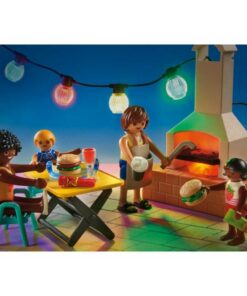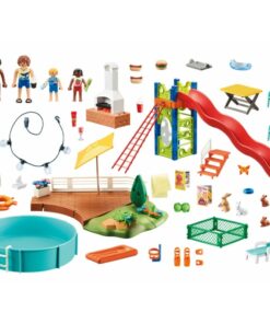 Con tobogán de olas, piscina rellenable, parrilla luminosa (requiere 2 micropilas de 1,5 V), linternas luminosas (requiere 1 micropila de 1,5 V) y muchos otros accesorios.