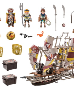 - ● En la popa del barco hay una jaula extraíble que ofrece espacio para una figura PLAYMOBIL. La puerta de la jaula se puede abrir y cerrar mediante un cabrestante.