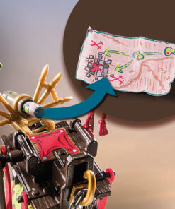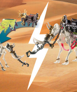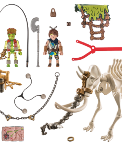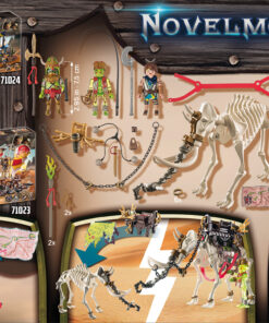 - ● Con la ayuda de la silla de montar, una figura puede montar en el mamut. En el lateral de la silla de montar se pueden fijar dos lanzas.