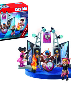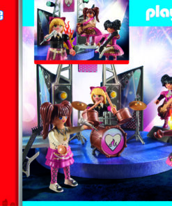 Desarrolla tu talento musical con la Banda de Música de PLAYMOBIL. Ya sea con la guitarra, la batería o la voz, con la Banda de Música de PLAYMOBIL siempre darás en el clavo. Deja que los cuatro músicos con sus locos y coloridos trajes hagan vibrar al público. Mueve las baquetas junto con el baterista y crea un ritmo roquero o improvisa grandes interludios de guitarra para los dos guitarristas. Un genial set de juego para jóvenes y mayores aficionados a la música rock a partir de 4 años. El set de juego de edición limitada incluye cuatro figuras PLAYMOBIL, un escenario con dos plataformas laterales, dos guitarras, una batería, un micrófono y otros extras para experimentar la música mediante el juego. Las figuras pueden colgar las guitarras con una correa de silicona. Comparte la alegría: ponte en diferentes papeles tú mismo o representa tu concierto favorito junto a tus amigos y amigas.