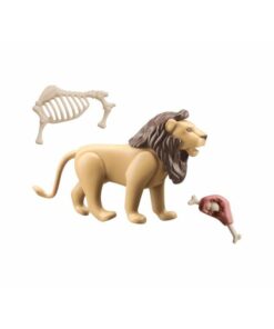 El rugido de un león puede oírse a varios kilómetros, marcando así su territorio. Los leones son muy sociables y viven juntos en manadas. Una manada de leones suele estar formada por varias hembras con cachorros y un macho adulto. La mayoría de los leones en libertad son nativos de la sabana africana. Pero también hay leones asiáticos. Son algo más pequeños que sus parientes africanos y también se les llama leones persas o leones indios. Wiltopia invita a los niños y niñas a descubrir emocionantes regiones del mundo que merecen ser protegidas y sus habitantes animales. Además, combina el juego y el aprendizaje de una manera única. El set PLAYMOBIL incluye un león, un esqueleto, carne y una tarjeta de conocimiento. La figura puede inclinar la cabeza hacia arriba y hacia abajo, abrir la mandíbula inferior, mover las cuatro patas individualmente y girar la cola.