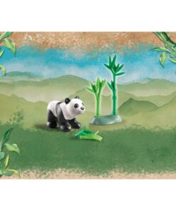 Wiltopia invita a los niños y niñas a descubrir apasionantes regiones del mundo que merecen ser protegidas, así como sus habitantes animales. Además, combina el juego y el aprendizaje de una manera única. El set PLAYMOBIL incluye un joven panda, una planta de bambú, hierba y una tarjeta de conocimiento. La figura del panda puede inclinar su cabeza hacia arriba y hacia abajo.