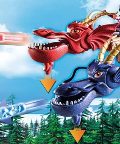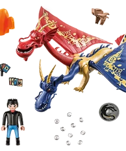 Ambientada 1.300 años después de los hechos de Cómo entrenar a tu Dragón, los dragones son una leyenda en el mundo moderno. Cuando una anomalía geológica abre una inmensa fisura de varios kilómetros de profundidad en la superficie de la Tierra, científicos de todo el mundo se reúnen en un nuevo centro de investigación para estudiar el misterioso fenómeno. Pronto, un grupo de niños descubren la verdad sobre los dragones y el lugar en el que se han escondido, un secreto que deben guardar para proteger lo que han descubierto. Jun es una mística de la nueva era. No hay mito o magia en la que no crea. Al contrario que su madre, la directora de Icaris, que no cree en la magia. Jun tiene un astuto sentido del humor y, al igual que Tom. Es un sueño hecho realidad cuando descubre a los dragones, porque eso significa que todas las leyendas mágicas deben ser ciertas. El dragón de Jun, Wu & Wei, es un dragón de inspiración china con doble personalidad: uno agresivo y otro tranquilo. Siempre están tirando el uno del otro para liderar. La figura del dragón Wu & Wei de PLAYMOBIL está equipada con patas móviles, así como con cabeza y cuello. Las grandes alas se pueden girar en todas las direcciones. Con las sillas de montar, Jun y Eugene pueden montar en el dragón. De cada una de las dos cabezas de dragón se puede disparar una flecha de fuego o de hielo. Para introducir la flecha, se abre la boca tirando hacia abajo de la barra de la barbilla y se vuelve a cerrar. El disparo de la flecha también se puede activar tirando de la barbilla. El set incluye: Jun Wong y Eugene, el dragón de dos cabezas Wu & Wei, una mochila con el dragón Bubblehorn, dos sillas de montar, 2 proyectiles, un gran cristal y otros extras muy chulos. Recomendado para niños de cuatro a diez años. Advertencia. Peligro de asfixia. Contiene una bola pequeña y piezas pequeñas. No apto para niños menores de 3 años.