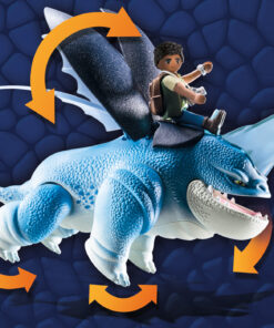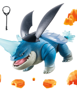 Ambientada 1.300 años después de los hechos de Cómo entrenar a tu Dragón, los dragones son una leyenda en el mundo moderno. Cuando una anomalía geológica abre una inmensa fisura de varios kilómetros de profundidad en la superficie de la Tierra, científicos de todo el mundo se reúnen en un nuevo centro de investigación para estudiar el misterioso fenómeno. Pronto, un grupo de niños descubren la verdad sobre los dragones y el lugar en el que se han escondido, un secreto que deben guardar para proteger lo que han descubierto. D’Angelo es el hijo de un ex-soldado que dirige la seguridad del laboratorio, D’Angelo es muy disciplinado. Su mayor temor es decepcionar a sus padres. Con un gran interés por la medicina veterinaria, se convierte rápidamente en el «médico de dragones» del grupo. El dragón de D’Angelo es Plowhorn. La compasión y la confianza de D’Angelo la ayudan a derribar los problemas de su dragón y el dúo no tarda en descubrir que les encanta destrozar cosas juntos. Además de las patas y la mandíbula inferior móviles, la figura Plowhorn de PLAYMOBIL también tiene alas articuladas. Cuando éstas se abren, las alas transparentes quedan al descubierto. Un pequeño cuerno en la cabeza sirve a D’Angelo como pinza para montar. Con su cuerno, Plowhorn puede hacer estallar el gran cristal. El set incluye el personaje D’Angelo Baker y su dama dragón Plowhorn, una roca de cristal para hacerla estallar, un maletín de médico, un estetoscopio, una mochila y muchos otros estupendos extras. Recomendado para edades entre cuatro y diez años.