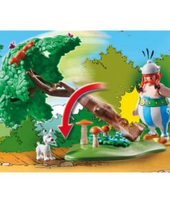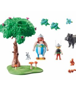 Obélix es un experto en dos cosas: Los menhires y la caza de jabalíes. Así que cuando no está trabajando en un nuevo menhir, está en el bosque vigilando a los grandes cerdos erizados. El astuto cerdo intenta escabullirse, pero tropieza con un árbol caído y el gordo galo lo atrapa y se lo lleva. Pero antes de que regrese al pueblo, el árbol debe ser colocado de nuevo, de lo contrario el amante de la naturaleza Ideafix se pondrá nervioso. El set PLAYMOBIL contiene los galos Astérix y Obélix, el perro Ideafix, dos ardillas y un jabalí, así como un árbol. Obélix puede llevar el jabalí y colocar el árbol caído.