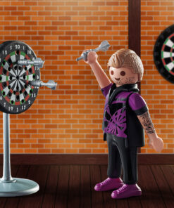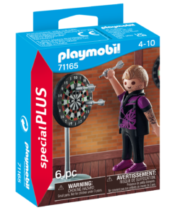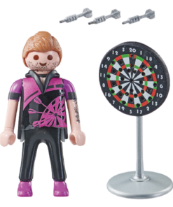 Los dardos no sólo son un pasatiempo popular, sino también un deporte exigente. El jugador de dardos se entrena a diario para mejorar su habilidad y concentración. Con habilidad, lanza los dardos en la diana. Si acierta, ¡puntuación perfecta! El juego incluye una figura PLAYMOBIL, una diana y tres dardos. Los dardos pueden ser sostenidos por la figura en la mano y fijados en 31 posiciones diferentes de la diana. Las figuras PLAYMOBIL Special Plus ofrecen una gran diversión de juego con muchos accesorios a partir de 4 años. Se puede jugar solo con las figuras de forma individual o combinadas con otras gamas de PLAYMOBIL.