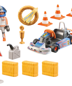 ¿Buscas un gran regalo para los aficionados al motor? Entonces el Gift Set de PLAYMOBIL Kart de Carreras es justo lo que necesitan. Este set de juguete lleva a los niños y niñas entusiastas del automovilismo a la emocionante vida de las carreras. El conductor se pone el casco, se sienta en el elegante kart y sale a la pista de carreras. ¿Cruzará la línea de meta en primer lugar? El set de PLAYMOBIL consta de un piloto de carreras PLAYMOBIL, un kart, tres pilones, un trofeo, una corona para el ganador y otros fantásticos accesorios de carreras. El kart se puede repostar con el bidón. Gracias al diseño de la caja, es posible etiquetar con el nombre, los Gift Sets de PLAYMOBIL ahorran papel de regalo y protegen así el medio ambiente. Un gran juguete para llevar a casa y regalar.