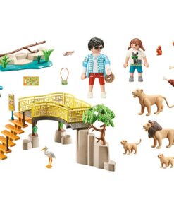 El set viene completo con una pasarela de visitantes que permite a sus hijos obtener una vista panorámica de los rugientes leones. ¿No es súper emocionante?