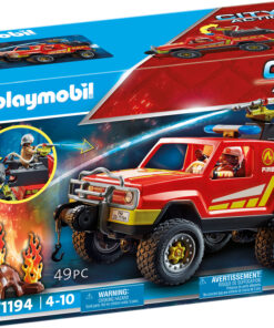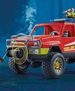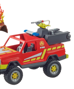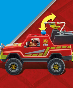 Cuando se produce un incendio, los bomberos de PLAYMOBIL acuden inmediatamente con su camión de rescate. El equipo de bomberos se prepara inmediatamente en la parte trasera del camión y se dirige a extinguir el fuego. Gracias a su equipo y experiencia, el bombero tiene el incendio bajo control en poco tiempo. El set incluye un bombero, un camión de bomberos con cabrestante y enganche de remolque, un tronco con llamas, un casco de bombero y muchos otros extras. El vehículo ofrece espacio para dos figuras. La unidad de pulverización de la parte trasera es funcional y puede girar 180°. Para el llenado, se extrae el depósito de la bomba, se llena de agua y luego se conecta a la manguera y se fija de nuevo en el soporte.