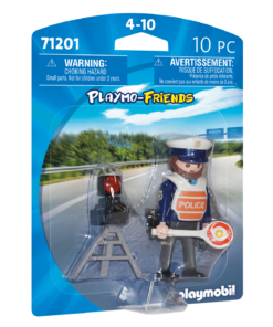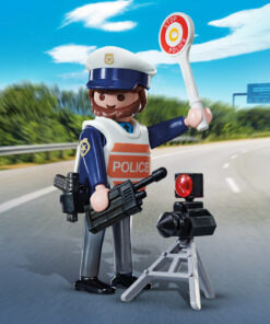 Regula el tráfico junto al simpático policía de tráfico de PLAYMOBIL. No importa lo ocupada que esté la carretera, el policía de tráfico mantiene el control en cualquier situación. Con la señal, guía a los coches de forma segura a través de cualquier punto de la vía. Pero nadie debe exceder los límites de velocidad, porque entonces entra en acción el control de velocidad y puede salirle caro. El set de juguete incluye una figura PLAYMOBIL, una radio, una señal de mano de policía y un radar trampa de velocidad. Con las creativas figuras de juego PLAYMO-Friends, niñas y niños pueden jugar solos o con sus amigas y amigos inventando nuevas y emocionantes historias. Una gran diversión para jugar y coleccionar a partir de 4 años.