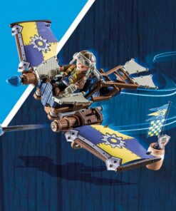 Dario DaVanci es conocido por sus ingeniosas invenciones. Su último golpe de genialidad es un ágil planeador volador. Por supuesto, el inventor prueba su obra él mismo y se sienta en la ingeniosa máquina voladora. Habilidosamente dispara proyectiles de agua a través de los anillos en llamas y así acumula puntos en el torneo de los Guardianes. En caso de encontrarse en apuros, el planeador volador está equipado con un asiento eyectable. Sin embargo, Dario no tiene intención de usarlo. Con una historia mística y características creativas, el gran mundo de juego de los caballeros de Novelmore proporciona el material para innumerables y emocionantes historias heroicas.