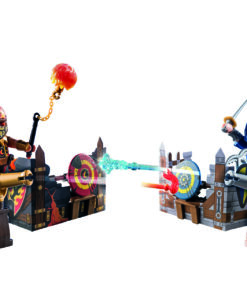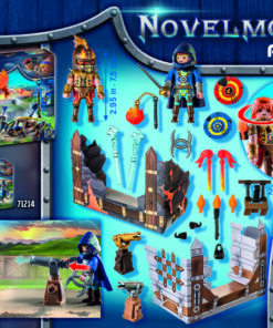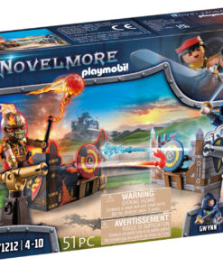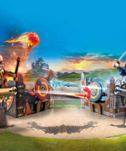 ¡Unámonos al emocionante duelo de caballeros! El luchador Gwynn se enfrenta con el cañón de de agua a Kaboom con su proyectil de fuego. Cada uno intenta dar en el blanco del oponente y derribarlo. Gwynn tiene buena puntería, pero Kaboom también y los dos se enzarzan en una intensa competición. Los detallados juegos de Novelmore invitan a vivir emocionantes aventuras caballerescas con interesantes personajes e ingeniosas funciones. Gran diversión a partir de 4 años. Especificaciones: – El duelo de caballeros definitivo: Las dos dianas se insertan en los accesorios de cartón de la pared. Cuando se tocan, la diana se inclina 90 grados hacia atrás y los caballeros pueden sumar puntos. – Cañones móviles: Los dos cañones pueden girar y pivotar y están conectados a la base mediante una suspensión. Los cañones se cargan por delante y los proyectiles se catapultan pulsando el gatillo. – Equipamiento flexible: los puños de los brazos, el casco, la capa y las llamas pueden quitarse de las figuras. – Todo está en las expresiones faciales: Kaboom tiene una cara intercambiable que se puede cambiar quitando el peinado. – La seguridad es lo primero: todos los sets de juego PLAYMOBIL cumplen con los más altos estándares de calidad y seguridad.