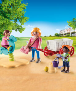 Conviértete en educador o educador con el Starter Pack de PLAYMOBIL. Junto con su profesor, los niños difrutan en el patio del recreo. Los juguetes de arena y la botella de agua están guardados de forma segura en el carro. En cuanto llegan a su destino, los niños saltan al arenero y al divertido balancín. Un detallado juego para niños y niñas a partir de 4 años. El set incluye tres figuras PLAYMOBIL, un carro de mano, juguetes de arena, bolsa, gorra y otros bonitos extras para un juego de rol imaginativo. La botella de agua se puede guardar en la bolsa de hombro. Los Starter Packs son la perfecta introducción al juego imaginativo y al centro del universo PLAYMOBIL. Los sets contienen figuras de juego y accesorios para las diferentes líneas de PLAYMOBIL, son rápidos de montar y están listos para jugar de inmediato.