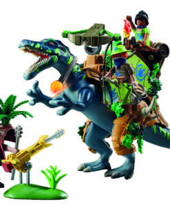 ¡Aventuras en trepidantes con los geniales sets Dino Rise de PLAYMOBIL! Junto con su equipado Spinosaurus, Ayla y Samu forman una gran defensa. Con valentía, el trío se enfrenta a todos los desafíos. Desde su posición en la espalda del dinosaurio, Ayla puede manejar el cañón de rayos y defenderse del villano con su cañón de pie. Samu se ha colocado de pie a un lado y se prepara para intervenir con su lazo. Con personajes originales, impresionantes dinosaurios y sofisticadas armaduras, el mundo de juego Dino Rise de PLAYMOBIL proporciona mucho material de juego lleno de acción. El regalo perfecto para todos los/las fans de los dinosaurios a partir de 5 años.