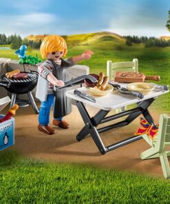 Cuando se hace una barbacoa, la comida sabe el doble de bien al aire libre. Después de un día lleno de eventos, todos se reúnen alrededor de la parrilla y esperan hasta que los platillos estén listos. Este encantador set de juego PLAYMOBIL contiene todo para unas acogedoras noches de barbacoa: mesa, sillas, vajilla y cubiertos, un congelador y por supuesto una parrilla. Con los detallados sets de juego de la serie de Familia y Diversión de PLAYMOBIL, los fans del camping a partir de los 4 años pueden sumergirse en innumerables aventuras de juego de rol variadas.