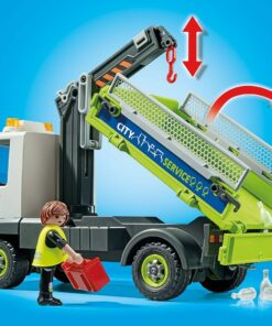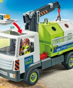 - El set incluye dos figuras de PLAYMOBIL, un camión de reciclaje de vidrio con contenedor y grúa flexible, dos contenedores, botellas y otros extras para divertidas aventuras de juego de rol en la habitación de niños y niñas. Para insertar las figuras, el techo del camión se puede quitar.