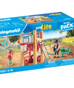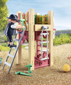 En el parque infantil se está construyendo una nueva torre. El carpintero trabaja ensamblando hábilmente los listones de madera. El niño espera ansioso para inaugurar por fin la torre de juegos. Los Starter Packs de PLAYMOBIL invitan a niñas y niños a sumergirse directamente en el variado mundo de PLAYMOBIL. Los sets incluyen figuras y accesorios a juego de los mundos PLAYMOBIL, se montan rápidamente y están inmediatamente listos para jugar. Además este set de juego está compuesto por más de un 80% de materiales sostenibles.
