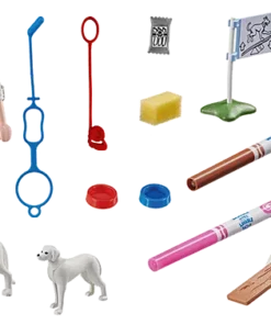 Experimenta la diversión de los colores para los amantes de los animales con el Adiestramiento de perros de PLAYMOBIL. Haz que el entrenador de perros practique trucos en el campo de entrenamiento con los dos adorables perros. El obstáculo con el tablero puede usarse como rampa o balancín, ¡depende totalmente de tu creatividad! Con los rotuladores incluidos, puedes añadir colores vibrantes a la bandera y a los personajes para dar vida al juego. Las pegatinas especialmente recubiertas permiten colorear y limpiar fácilmente, creando infinitos diseños. Sólo tienes que pegarlas, quitarlas y recolocarlas a tu gusto. Los rotuladores lavables y la esponja permiten infinitas posibilidades creativas.