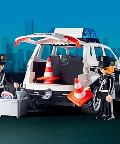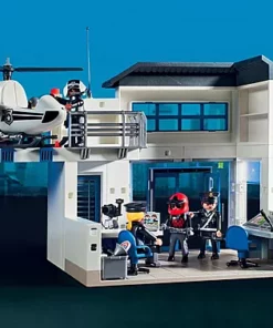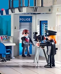 En el centro de mando de la gran comisaría entra una llamada de emergencia. Un gángster en busca y captura ha sido localizado en su quad. La gran puerta de entrada de la comisaría se abre y, con el sonido de las sirenas, comienza la persecución. Apenas capturado, se registran las huellas dactilares del sospechoso y se identifica al criminal. A través de una brecha en la pared, los delincuentes capturados pueden escapar de las dos celdas. La comisaría tiene espacio para un vehículo policial (no incluido), y en el tejado hay un helipuerto.
