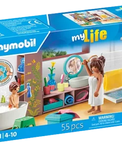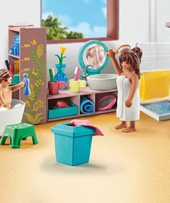 El moderno cuarto de baño es un auténtico paraíso del bienestar, con bañera, ducha, lavabo y numerosos accesorios de baño. Perfectamente combinable con otros conjuntos Living House de PLAYMOBIL. Diversión sostenible: De media, todos los sets PLAYMOBIL My Life Living House están compuestos por más de un 80% de matrial reciclado y de origen natural.