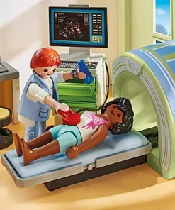 Con la máquina de resonancia magnética, el radiólogo examina a su paciente. Incluye máquina de resonancia magnética con cama, pantalla de diagnóstico y muchos accesorios. Perfectamente combinable con otros sets de hospital de PLAYMOBIL. Con este realista set PLAYMOBIL, los niños y niñas pueden recrear una visita al radiólogo. Al igual que en la vida real, los pacientes pueden ser trasladados a la máquina de resonancia magnética en la cama.