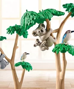 La fauna de Australia es increíblemente diversa y goza de fama mundial. En la fuente de agua se pueden observar canguros, koalas, cucaburras e incluso ornitorrincos. ¿Y qué es eso que hay en el árbol? ¿Es acaso un lagarto de cuello fruncido? Con muchos animales – el canguro puede llevar a sus crías en su bolsa, y el lagarto de cuello fruncido puede levantar su fronda.