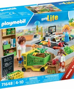 Los Promo Packs de PLAYMOBIL ofrecen diversión extra a un precio reducido. Con el detallado Supermercado ecológico de PLAYMOBIL. Niños y niñas a partir de 4 años pueden recrear la compra en casa, permitiéndoles experimentar su vida cotidiana a través del juego. Coloca los artículos en el carrito de la compra y luego en la cinta transportadora, paga con la tarjeta, recógelo todo y al coche. Este colorido set incluye dos figuras PLAYMOBIL, un carrito de la compra, una estantería con artículos, una cesta de la compra y muchos otros extras.