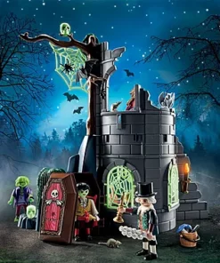 En las Ruinas encantadas aguardan espeluznantes aventuras. Hasta los murciélagos y las ratas tiemblan de miedo ante el monstruo y el vampiro. ¿Qué brebajes secretos se están preparando? Los Promo Packs de PLAYMOBIL ofrecen diversión extra a un precio reducido. Este detallado set incluye las ruinas de un castillo, tres figuras PLAYMOBIL, varias arañas, un ataúd y muchos otros extras para emocionantes juegos de rol de niños y niñas.