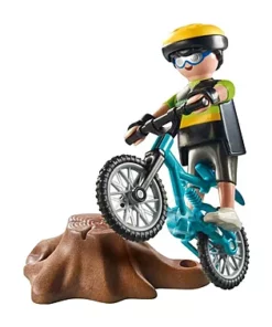 ¡Descubre senderos con el ciclista de montaña de PLAYMOBIL! Perfecto para aventuras llenas de adrenalina, este producto incluye una bicicleta de montaña equipada con un práctico caballete para paradas rápidas. El ciclista lleva protectores de brazos extraíbles y un resistente casco, listo para enfrentarse a los terrenos más desafiantes.