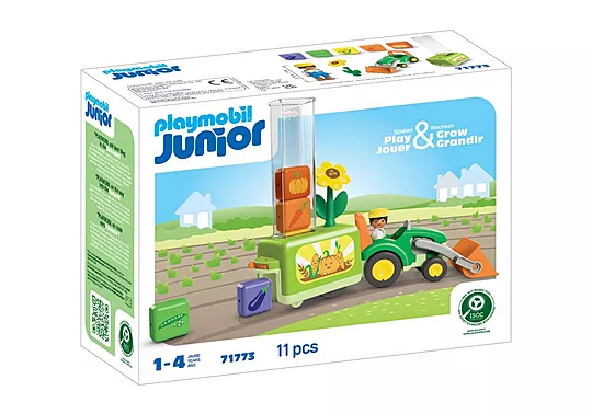 Además, PLAYMOBIL JUNIOR está fabricado en más de un 90% con plásticos de origen vegetal, cuyo origen se remonta a materiales sobrantes de la producción de alimentos o papel, según el enfoque de economía circular. Estos plásticos son tan resistentes y fáciles de cuidar como de costumbre.