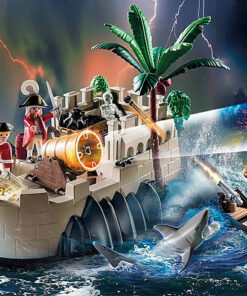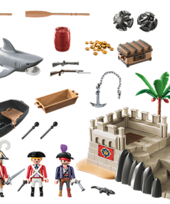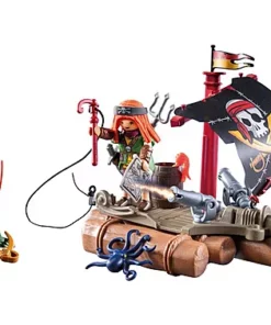 ¡Embárcate en una audaz búsqueda del tesoro con PLAYMOBIL! Con el Pirata con Ballesta giratoria y una calavera que brilla en la oscuridad, esta balsa está lista para épicas batallas en alta mar.