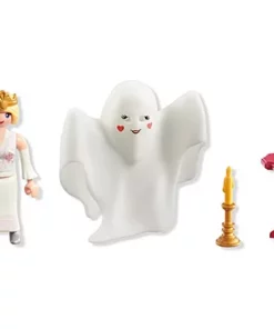 De día es una princesa, pero de noche se transforma en un brillante fantasma de castillo. El Fantasma del Castillo de la Princesa PLAYMOBIL añade un toque mágico con una capucha y una capa extraíbles para revelar su identidad real. Observa cómo su traje que brilla en la oscuridad ilumina los pasillos del castillo mientras guarda la llave del tesoro y prepara el escenario para una espeluznante diversión.
