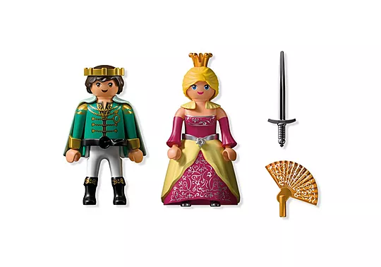 ¡Aventuras románticas te esperan en la corte real! Con su noble capa y su fiel espada, el Príncipe de PLAYMOBIL siempre está listo para defender el reino. A su lado, la elegante Princesa deslumbra con su falda desmontable y su delicado abanico. Ya sea asistiendo a un gran baile o explorando jardines encantados, puedes crear su propia historia. Los DuoPacks PLAYMOBIL ofrecen diversión mágica para un juego imaginativo y con encantadoras escenas de cuentos de hadas. Este encantador producto da vida a la fantasía real, inspirando un sinfín de historias y sueños de felices para siempre