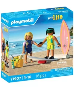 ¡A surfear en la Escuela de Surf PLAYMOBIL! Los surfistas en ciernes pueden practicar sus movimientos en el rodillo de entrenamiento antes de lanzarse a las olas. Con dos tablas de surf que se sujetan al rodillo de entrenamiento o se guardan perfectamente en el soporte, la diversión nunca se detiene. Las dos figuras se mantienen de pie sobre las tablas gracias a las abrazaderas para los pies, lo que facilita el dominio del equilibrio y la postura. La bolsa de playa está llena de artículos esenciales como toallas y botellas para un día completo de sol y surf. Este detallado producto PLAYMOBIL es perfecto para niñas y niños amantes de las olas listos para sumergirse en la diversión creativa de los juegos de rol junto a la playa.
