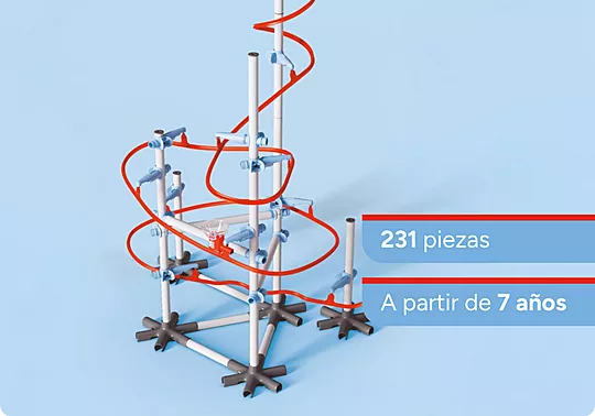 - Diseña pistas altas, anchas, zigzagueantes o empinadas, con descensos, curvas vertiginosas y espectaculares loops.