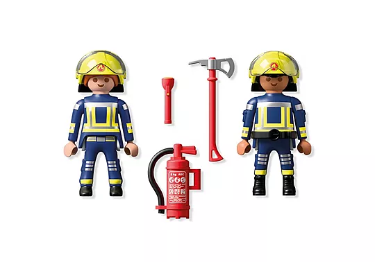 ¡Llamada de emergencia! El DuoPack Bomberos PLAYMOBIL está listo para la acción. Ya sea un edificio en llamas o una pequeña misión de rescate, estos dos intrépidos bomberos siempre están preparados. Equipados con un hacha, una linterna y un extintor, pueden hacer frente a cualquier emergencia. Sus cascos cuentan con viseras abatibles para intercambiar rápidamente el equipo y mejorar la visibilidad. Los niños y niñas pueden sumergirse en imaginativas aventuras de bomberos y crear sus propias historias. Los DuoPacks de PLAYMOBIL son perfecto para el juego creativo o como un emocionante complemento a cualquier colección PLAYMOBIL.