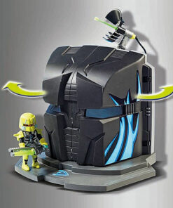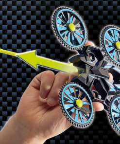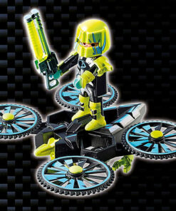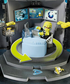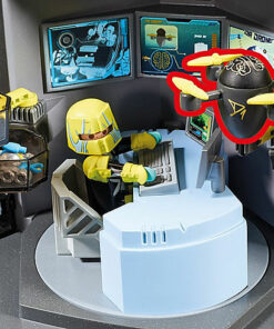 Con doble plataforma de aterrizaje para los dos drones. Los drones disponen de brazos móviles y con herramientas intercambiables. Además, disparan. El centro de mando se abre y cierra e incluye dos figuras.