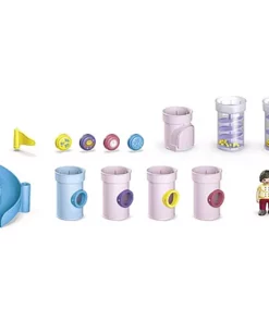 Cuatro tapas de ventana apilables para clasificar por colores Dos torres de descubrimiento con diferentes transparencias para observar las bolas y hacer sonidos