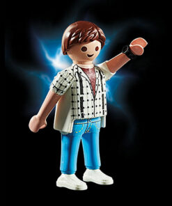 ¡Dios mío! Los locos viajes en el tiempo de Marty McFly continúan. Marty acaba de llegar a 1985 cuando el siguiente salto en el tiempo – al año 2015 – está en el horizonte. Basado en la segunda película de la trilogía de culto, Doc y Marty deben evitar que el hijo de Marty sabotee el futuro de la familia McFly. En 1985, Marty se sube a su flamante camioneta con su novia Jennifer Parker y conduce por las calles de Hill Valley. Pero en el futuro, el archienemigo de Marty, Biff Tannen, está alerta y no escatima en esfuerzos para ir a por Marty. El nuevo set de juego trae de nuevo a los fans de PLAYMOBIL de regreso al futuro. El set incluye a Marty McFly, Jennifer Parker y Biff Tannen, así como una camioneta Pick-up con espacio para dos figuras y una postal de coleccionista para los fans. El capó y el portón trasero de la camioneta se pueden abrir. Dimensiones: 25 x 12 x 13 cm (LxPxA). Recomendado para edades comprendidas entre los cinco y los noventa y nueve años. Advertencia. Peligro de asfixia. Piezas pequeñas. No apto para niños y niñas menores de 3 años.