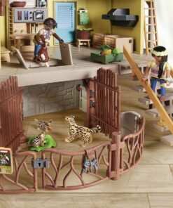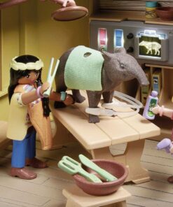 La Estación de Cuidado de Animales está situada junto al río y es donde se cuidan y crían los animales autóctonos. Para acceder a la estación se puede utilizar la escalera o una pasarela. La estación está equipada con una sala de tratamiento con mesa, lámpara de operación móvil, balanzas, lámpara de calor y monitor iluminado para las radiografías. Una escalera conduce a la planta superior de la estación, donde se almacena la comida. Después de un tratamiento exitoso, los animales pueden utilizar los dos recintos exteriores para su esparcimiento. Actualmente, una familia de tapires y ocelotes se alojan allí. En cuanto los animales vuelvan a estar sanos, serán liberados en la naturaleza. Este set de juego ricamente detallado transporta a los niños al fascinante mundo del Amazonas.El set de juego contiene tres figuras PLAYMOBIL, Sofía y Liv Palmer, y el director de la estación, el Dr. da Silva, una estación de cuidado de animales con muelle y recintos exteriores, bote de remos, una familia de tapires, una familia de ocelotes, dos mariposas, un loro y muchos otros accesorios para vivir emocionantes aventuras en la naturaleza. Con un nuevo tamaño de figura para niños de 5,75 cm.
