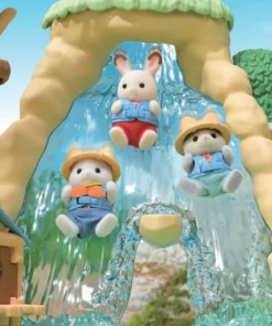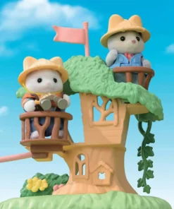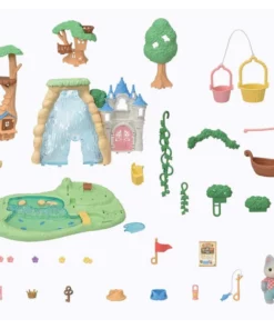 El set incluye figura bebé de la Familia Husky con su gorro de exploradora, chaleco salvavidas, linterna, bandera y caña de pescar, pieza principal con cascada, castillo, árbol y casa del árbol tirolina de hiedra x2, cesta x2 canoa, mapa, llave, corona, bandera y accesorios de decoración.